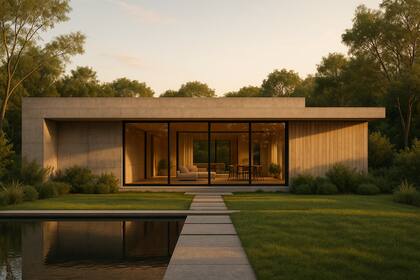 - Exterior arquitectónico al atardecer: Hacer un render arquitectónico de una casa contemporánea integrada en el paisaje natural, texturas realistas, iluminación HDR, estilo fotográfico editorial para revista de arquitectura, luz cálida de atardecer, perspectiva cinematográfica, materiales ultra detallados, render 8K.
